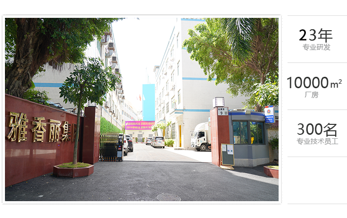 占地面積一萬余平方米,專業(yè)技術(shù)員工300余人,雅香麗憑借著在行業(yè)內(nèi)的專業(yè)化、精細化、特色化、新穎化、可持續(xù)化,榮獲國家"高新技術(shù)企業(yè)"、"深圳市專精特新中小企業(yè)"等重量級認證。